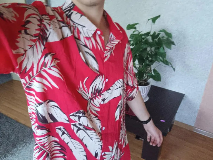 Experience the vibrant style and comfort of the Tropical Leaf Print Red Shirt with complete peace of mind. Try it risk-free today, knowing we offer a 30-day money-back guarantee if it doesn't become your new favorite summer essential. Ideal for fashion-forward individuals seeking a standout piece, this shirt promises to elevate your wardrobe. Embrace tropical vibes and make a bold statement with confidence. Shop now and capture the essence of island life without worry.
